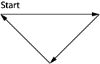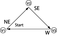 If the shape we are encoding is a large one, then a city block might be the appropriate unit of measure. But if we are to encode a smaller shape, like the triangle at the top of this page, we must use a smaller unit of measure. Let's use one inch as our unit of measure and the points of the compass as our directions. "North" will be fixed at the top of the paper / monitor. The size and shape of the triangle, then will be encoded with a string of directional letters. To interpret such a string, we will follow the following rule:
