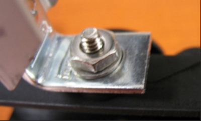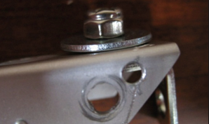 | Step 6: Screw the short bolt into the pivot post. Add a washer between the bolt and the metal link so it holds snugly. | |