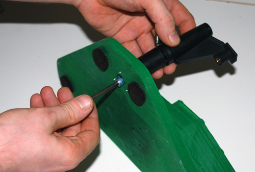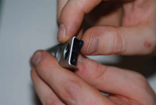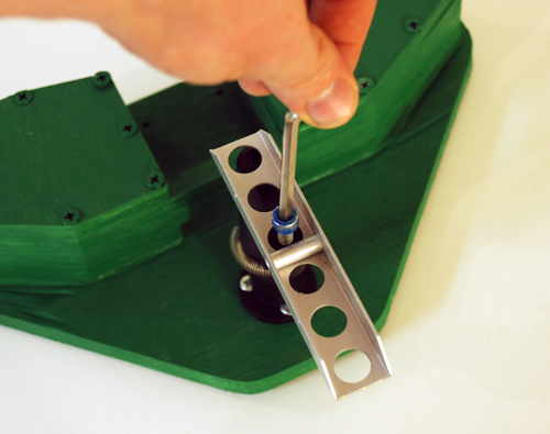 | Step 4: Attach the top part of the pivot post to the rest of the assembly. Tighten everything down with a 3/16” or 5mm hex wrench. | |